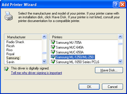 Select the printer type: