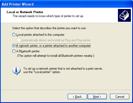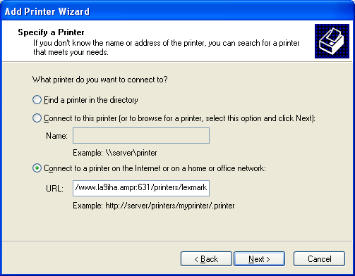 Select Network Printer and put in URL and click Next