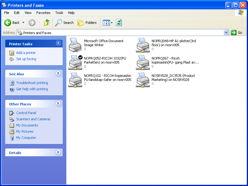 Go to Start and select Control Panel -> Printers and Faxes
