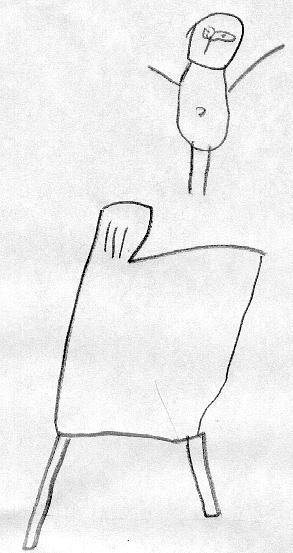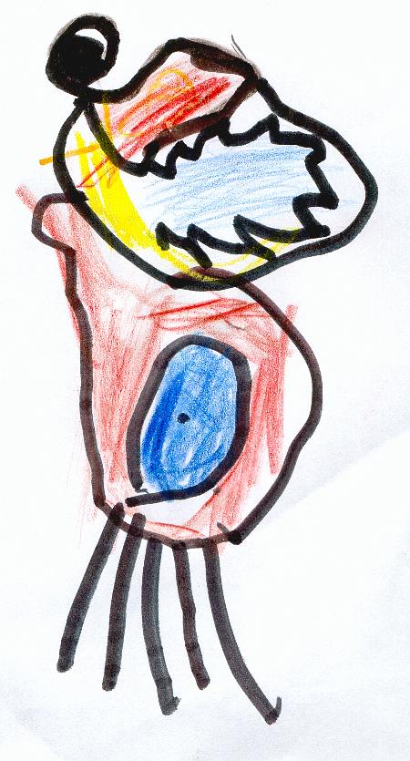 Her er Trollispodyret. Det blå på magen er "Namarpol". Inni magen er det "Trollspor" og det er veldig farlig å ta på. Når vi tar på det, blinker det, og det er veldig farlig. Dette er det skumleste dyret i verden! 7. september 2002.