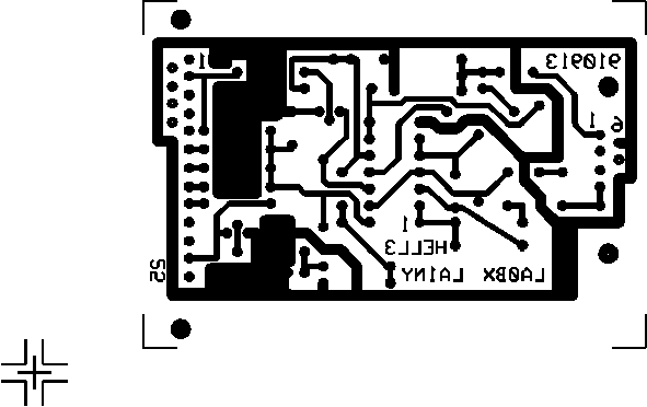 Legg merke til at kretskortet er lagt ut slik at C6 og C8 kan ha 5 eller 7.5 mm benavstand. PL1 og PL2 har lange tilledninger som er bøyd 90 grader og passer i hullene på kretskortet. PL1 kan plugges direkte i parallellporten bak på PC'en eller du kan lage en kabel mellom kretskort og PC. Hvis du monterer kortet i en boks sammen med et batteri kan vanlige D-kontakter festes i boksveggen og monteringstråd brukes for å koble dem til kretskortet. Mulighetene er mange og her er det fritt valg.